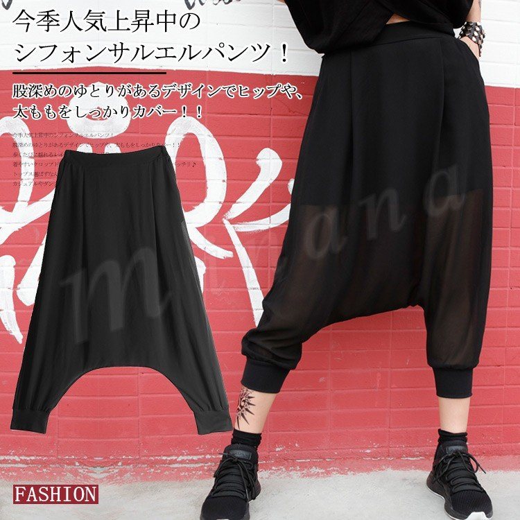 【】シフォンサルエルパンツ サルエルパンツ シフォンパンツ ドレープパンツ ジョガーパンツ アンクルパンツ サルエル 体型カバー レディース