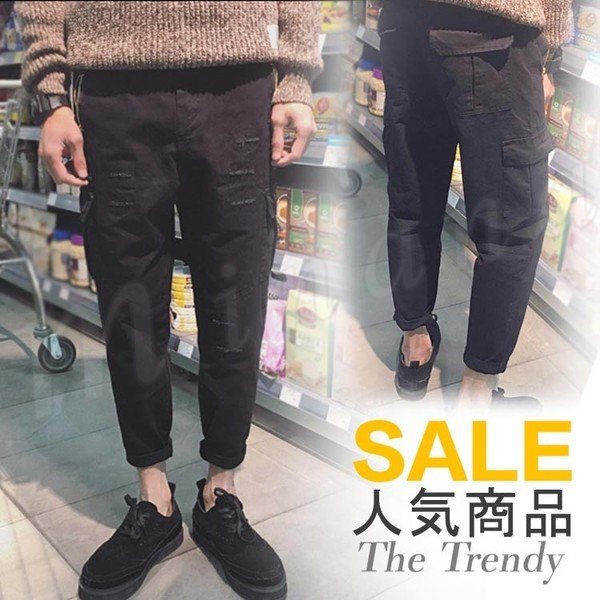 長パンツ サルエルパンツ 無地 パンツ メンズファション クロップドパンツ シンプル 無地 ダメージ加工 ゆったり ジョガーパンツ