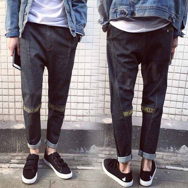 ジーンズ デニムパンツ 無地 英文字飾り メンズファション サルエルパンツ ボトムス デニム シンプル スリムパンツ クラシック風