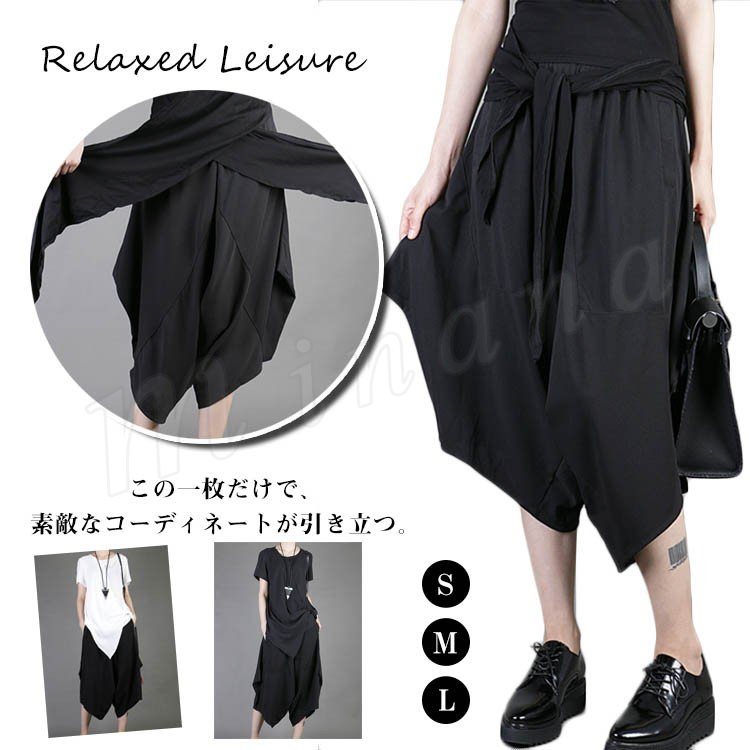 サルエルパンツ スカーチョ ワイド パンツ ガウチョパンツ 薄手 リラックスパンツ ゆるパン 変形ボトムス 楽チン ゆるカワ ヨガ マタニティ