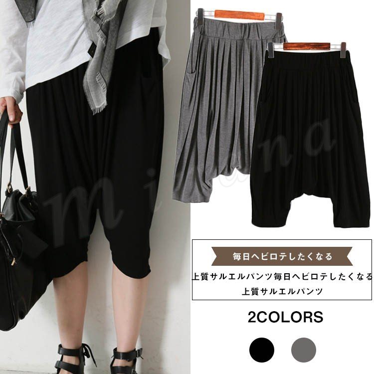 サルエルパンツ 5分丈 レディース ウエストゴム クロップドパンツ ボトムス ハーフパンツ ストレッチ 20代 30代 美脚 ダンス ジム