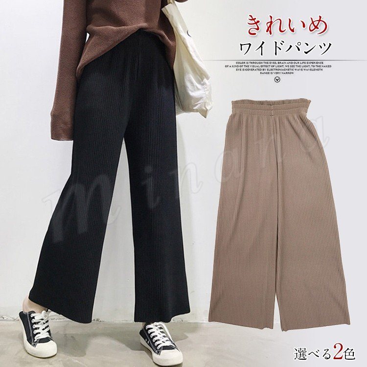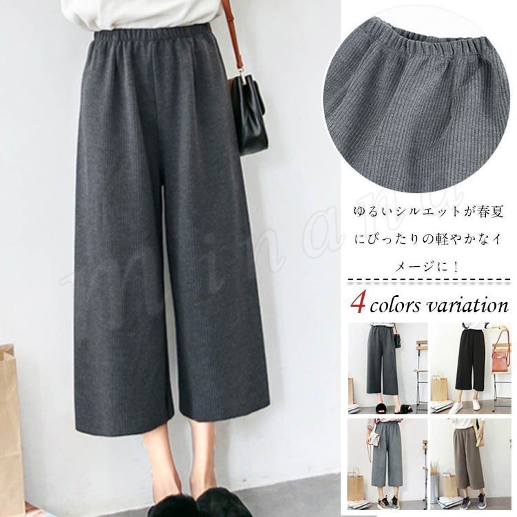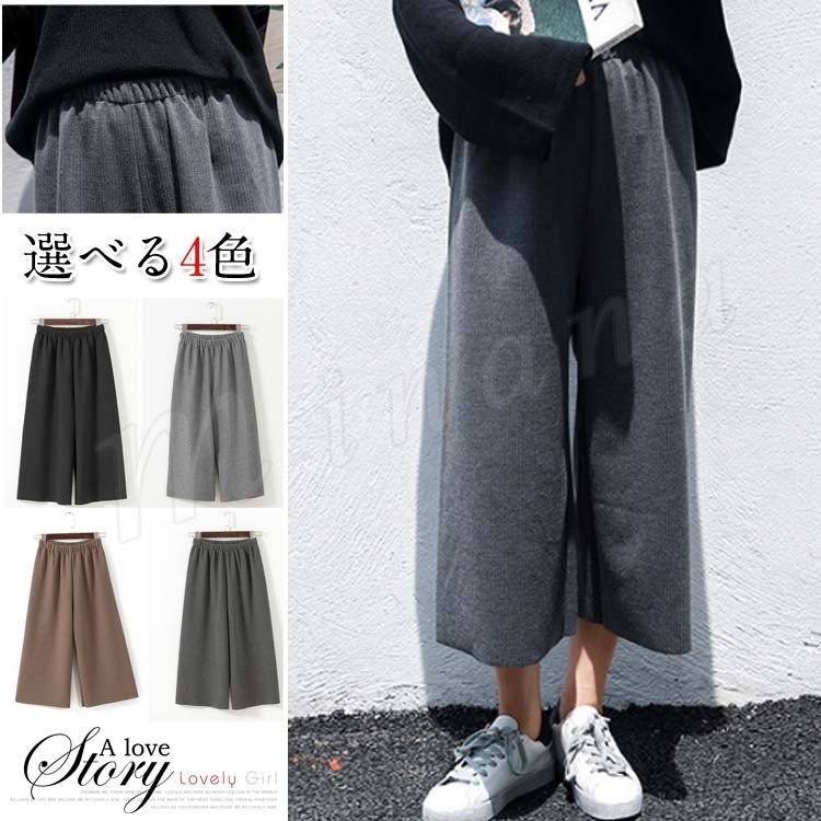 パンツ ワイドパンツ ワイド ガウチョ ガウチョパンツ レディース ニット ニットパンツ 無地 ベーシック シンプル