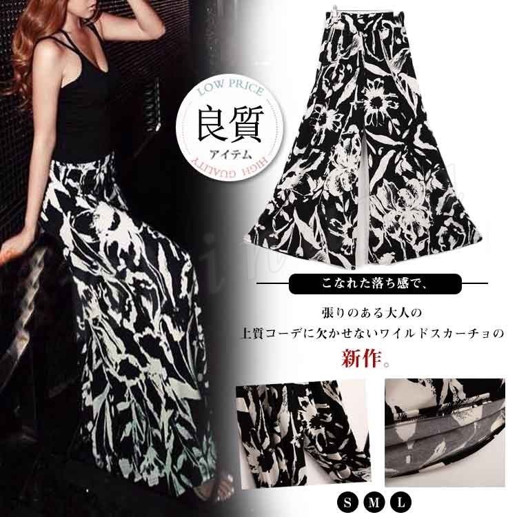 スカーチョ ワイルドパンツ ガウチョパンツ ワイドパンツ ロングパンツ 美脚 総柄 派手 プリント ボトムス パンツ ロング ガウチョ スカー