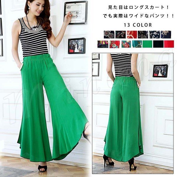 スカンツ ガウチョパンツ スカーチョ スカート風 美脚 美尻 フレアロング丈 ワイドパンツ レディース シフォン フレア ワイドパンツ ガウチ