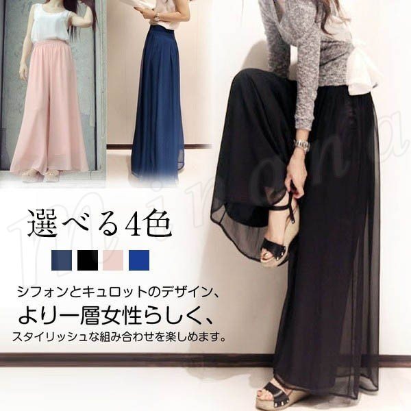 2018夏新作/ガウチョパンツ/シフォン/ワイドパンツ/レディース/無地/スカンツ/クロップドパンツ/ファッション/おしゃれ/カジュアル/きれいめ