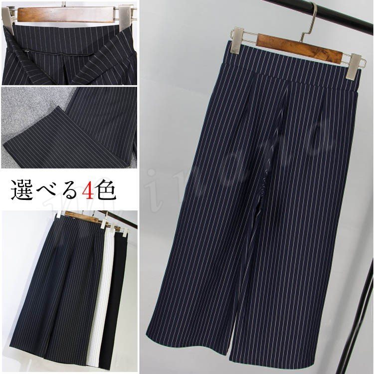 2018新作 ガウチョパンツ ワイドパンツ レディース ストライブ柄 無地 スカンツ スカーチョ ストレート ビジネス 通勤 ボトムス ズボン カ
