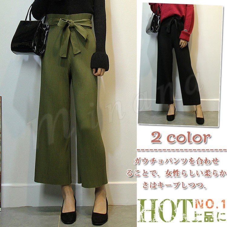 パンツ/レディースズボン/ワイドパンツ/九分丈パンツ/ガウチョパンツ/ボトムス/ストレート/ルーズ/きれいめ/秋冬/通勤/無地/大人/可愛い/