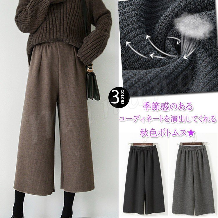 裏起毛 ガウチョパンツ レディース ガウチョ ワイドパンツ ボトムス ニット ハイウェスト ロング 9分丈 美脚 カジュアル ガウチョパンツ