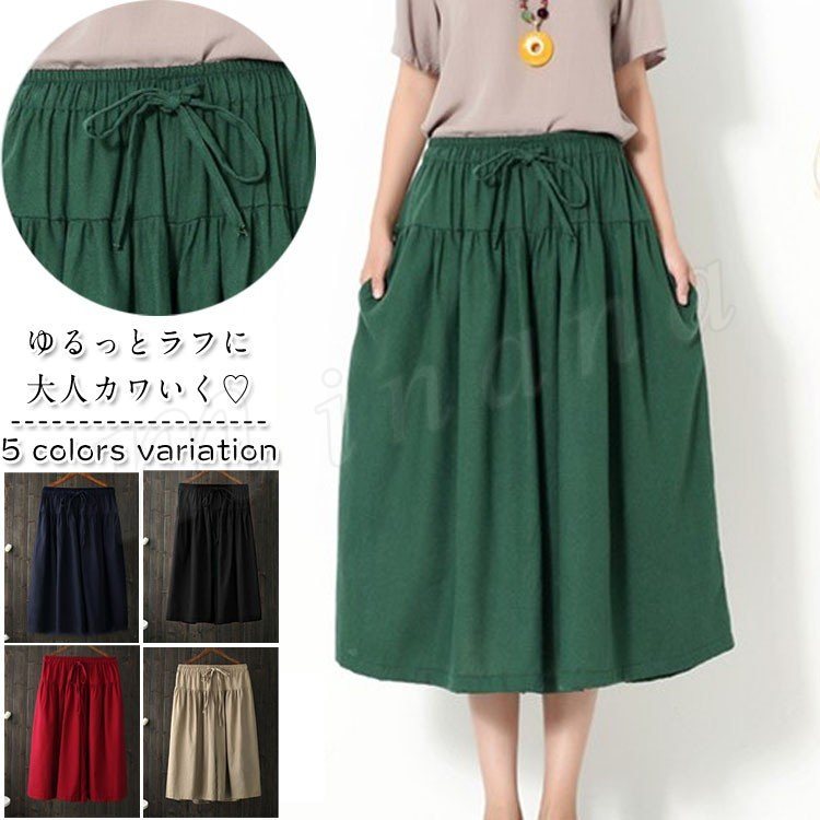 スカーチョ ガウチョパンツ レディース パンツ ボトムス 体型カバー ミモレ丈 七分丈 綿 ポリエステル カラー 黒 赤 グリーン 春 夏 タ
