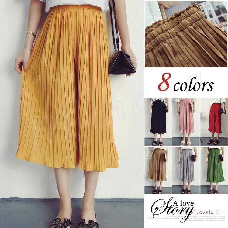 ガウチョパンツ ワイドパンツ プリーツ シフォン ゴム 春夏