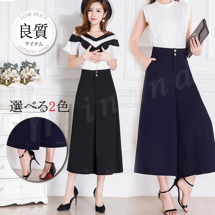 2018新作 ガウチョパンツ シフォン レディース ワイドパンツ スカンツ スカーチョ 九分丈 無地 カジュアル きれいめ ボトムス ズボン 春夏
