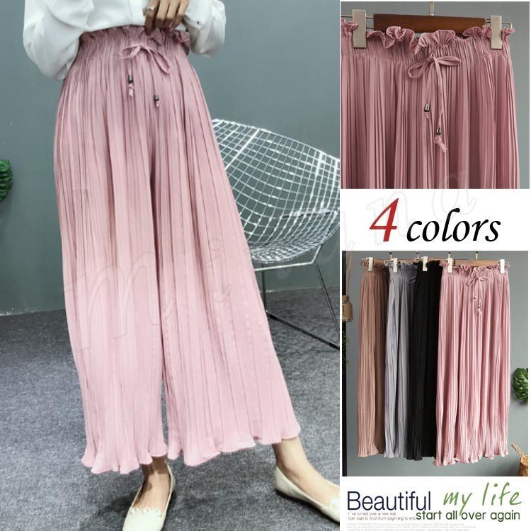 ガウチョパンツ レディース ワイドパンツ スカンツ スカーチョ ロングパンツ シフォンロングパンツ ボトムス 無地