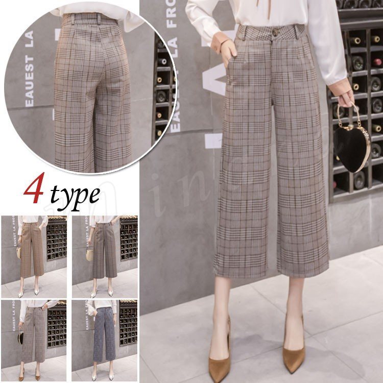 春秋新作/ガウチョパンツ/ワイドパンツ/レディース/クロップドパンツ/七分丈/ウエストゴム/厚手/スカンツ/ビジネス/通勤/カジュアル/春秋冬/お