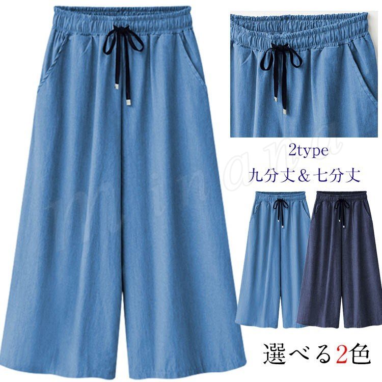 ガウチョパンツ デニム ワイドパンツ スカンツ デニムパンツ レディース ボトムス ロングパンツ ジーンズ ハイウエスト 美脚 デニム 2018春夏新
