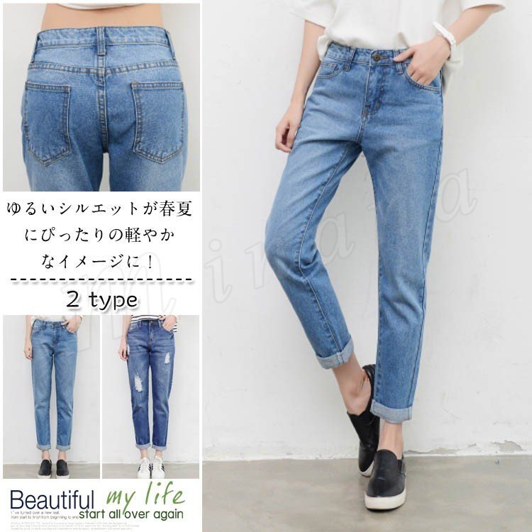 デニムパンツ レディース ボトムス ロングパンツ ジーンズ ハイウエスト 美脚 デニム ジーパン ダーメージ 大きいサイズ 2018春夏 新作