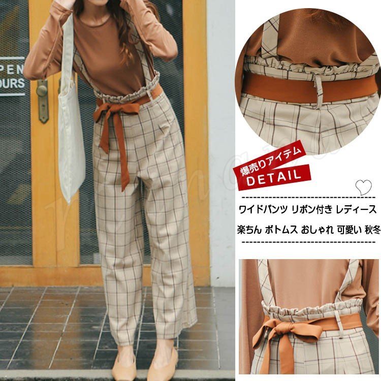 ワイドパンツ リボン付き レディース 楽ちん ボトムス おしゃれ 可愛い 秋冬新作 M/L