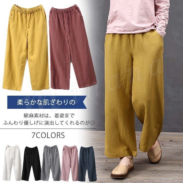 リラックス パンツ リネン ガウチョパンツ 綿麻 ワイドパンツ リネンパンツ リネンパンツ ロングパンツ リラックスパンツ 綿麻 パンツ サル