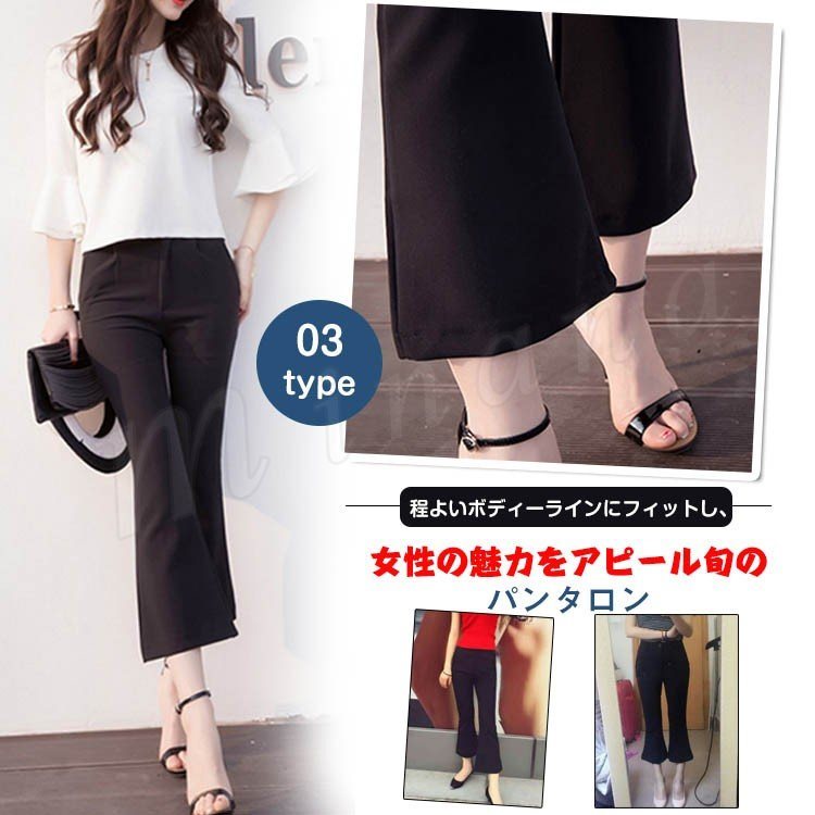 スキニー 7分丈 パンタロン 9分丈 クロップドパンツ ワイドパンツ 裾フレア レディース スリム ストレッチ シワになりにくい ハイウエスト