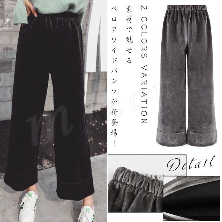 ベロア ワイドパンツ ロングパンツ ストレートワイドパンツ レディース ボトムス パンツ ワイドパンツ ストレート ベロア 秋 冬 トレンド