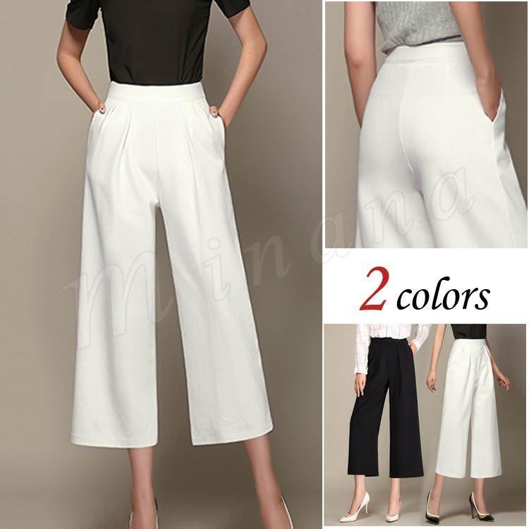 秋 ガウチョパンツ ワイドパンツ ゴム付き ブラック ダークグレー 通勤 OL ロングパンツファション レディースボトムス