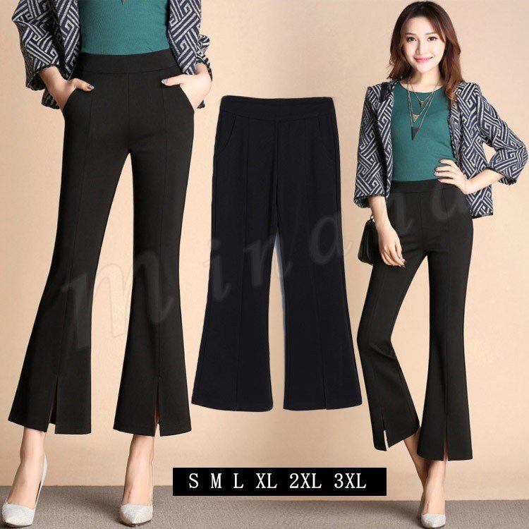 2018春新作/フレアパンツ/レディース/ワイドパンツ/ガウチョパンツ/九分丈/スリット/大きいサイズ/ビジネス/カジュアル/ファッション/スラッ