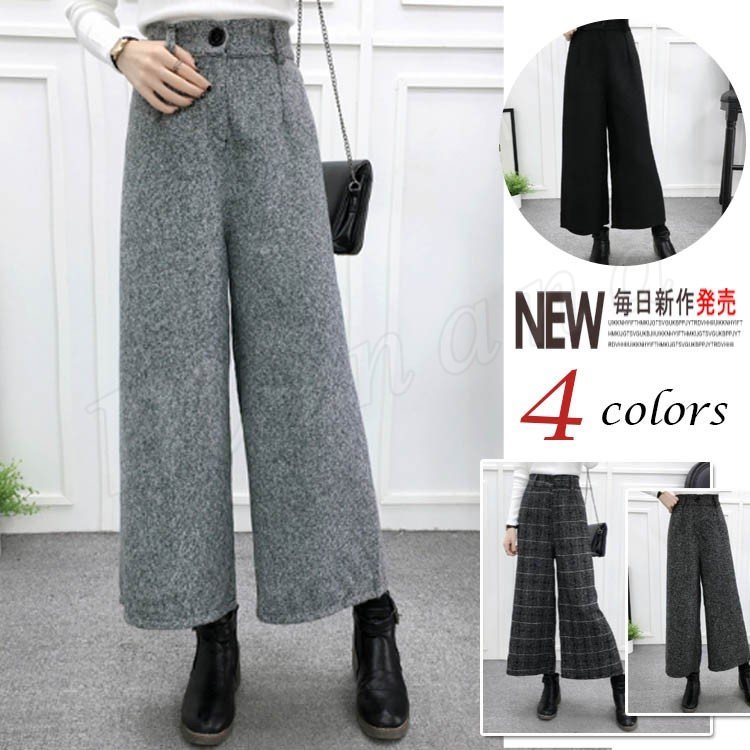 NEW★りぼんtype追加★ウール混 ワイドパンツ ウエスト後ろゴム ガウチョ パンツ ボトムス 冬新作 大人 レディース チェック柄 ボトム