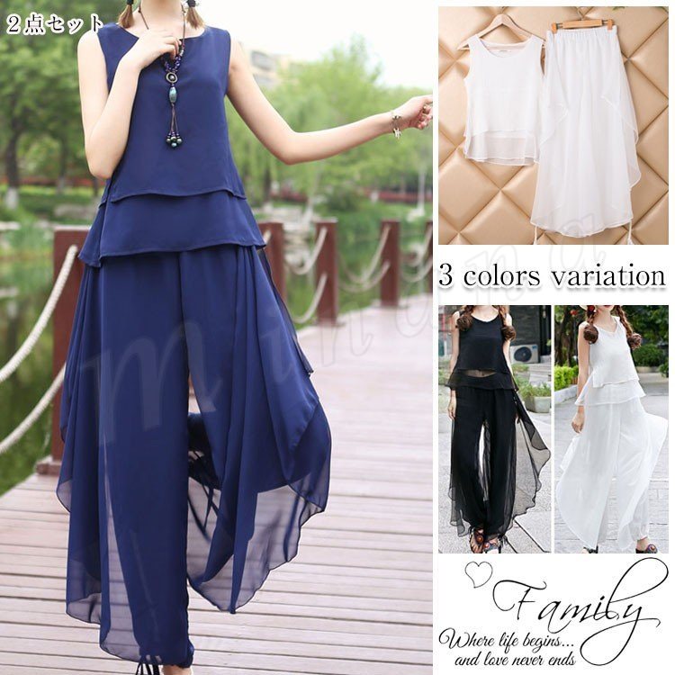 ガウチョパンツ ロング 春 夏 プリーツパンツ ワイドパンツ シフォン レディース パンツ コーデ 無地 大きいサイズ ロングパンツ キュロット マキ