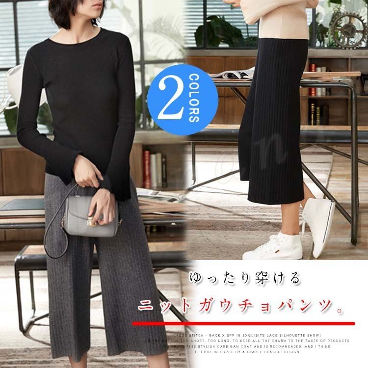 ワイドパンツ ニットワイドパンツ ガウチョパンツ ニット素材 ボトムス ミモレ丈 アンクル丈 クロップド丈 ゆったり 大きめ 楽チン 春 秋