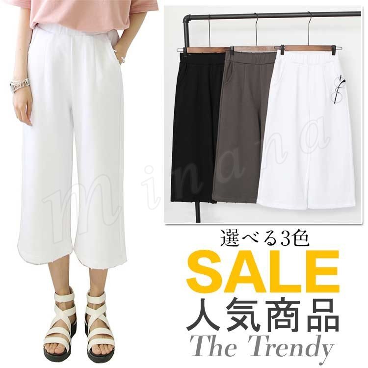 スカーチョ ワイドパンツ レディース スカンツ ガウチョパンツ ウエストゴム ボトムス 無地 ワイド クロップド 7分丈 ゆったり 春夏 美脚