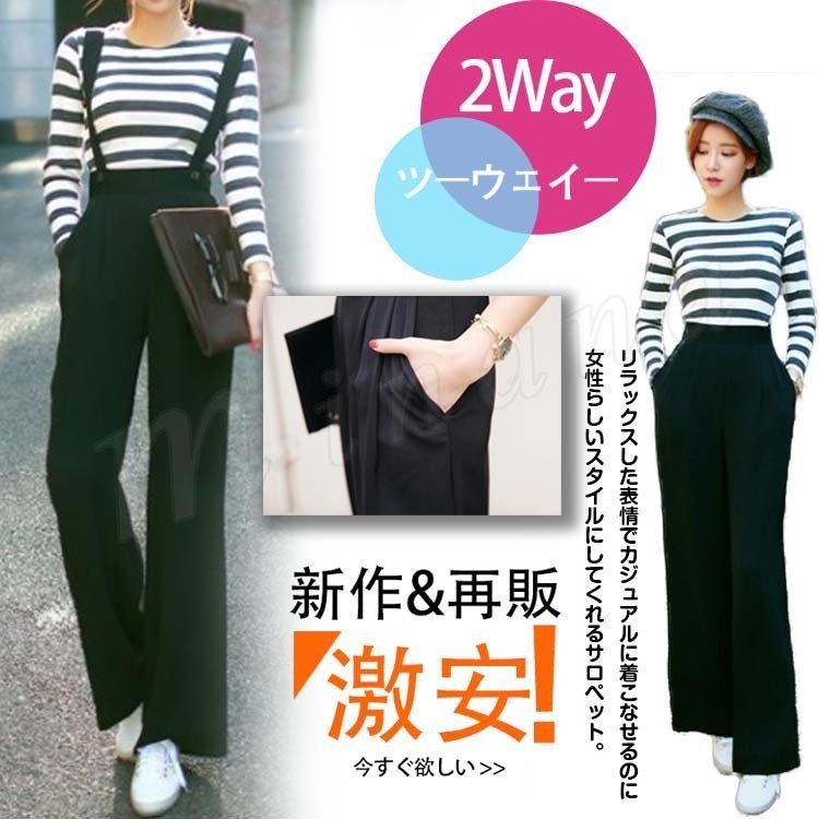 ワイドサスペンダーパンツ 無地ワイドパンツ サスペンダー付きワイドパンツ レディース ボトムス ロングパンツ スーツパンツ リラック ZOKO