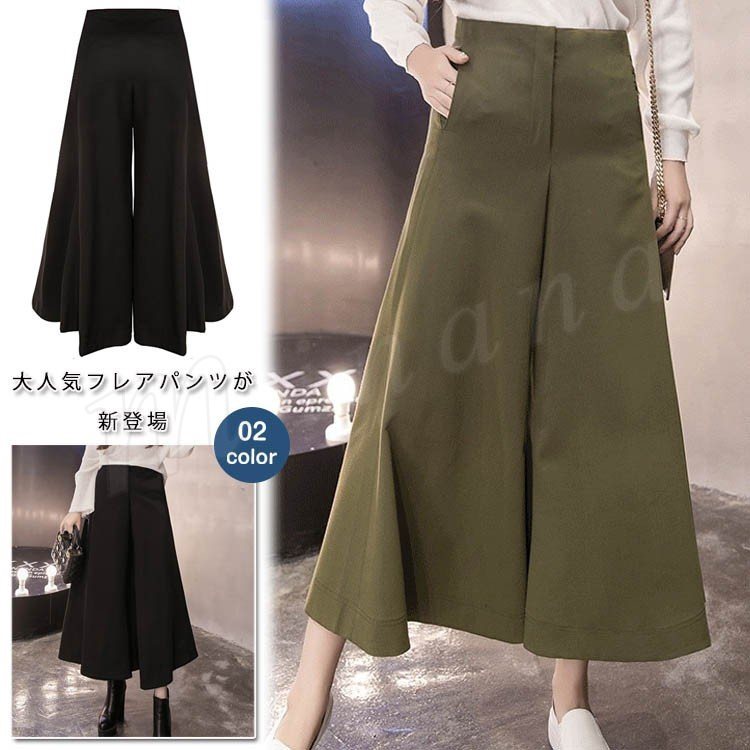 パンツ/レディースズボン/フレアパンツ/ワイドパンツ/9分丈パンツ/ガウチョパンツ/スカーチョ/ボトムス/カジュアルパンツ/ハイウェスト/大き