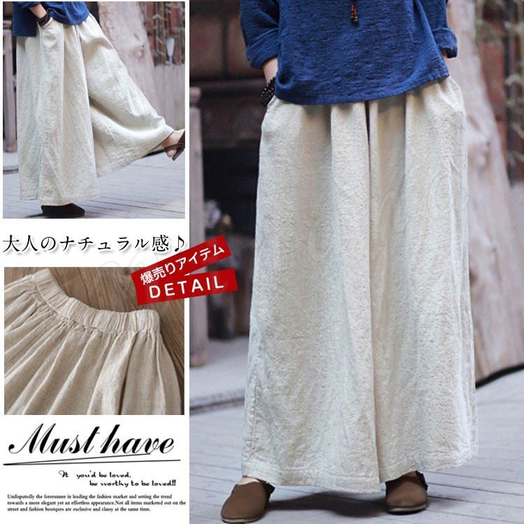 ガウチョパンツ 夏 レディース ワイドパンツ リネン素材 大きいサイズ ロングパンツ 無地 カジュアル ボトムス フレアパンツ 春夏 スカーチョ 20