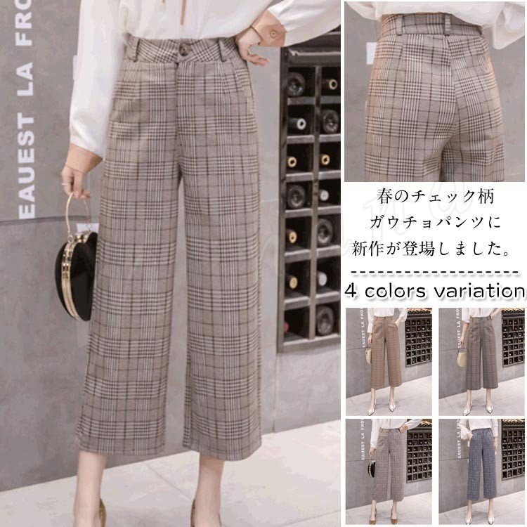 きれいめパンツ レディース ハイウエストボトムス ワイドパンツ ガウチョパンツ チェック柄 体型カバー レディースファッション 春