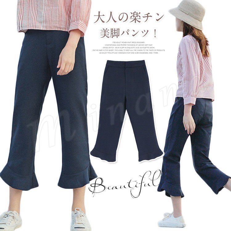 フリルアンクルパンツ スラックスパンツ テーパードパンツ 9分丈 ボトムス パンツ テーパード シンプル 無地 通勤 春 夏 秋 大人 女性