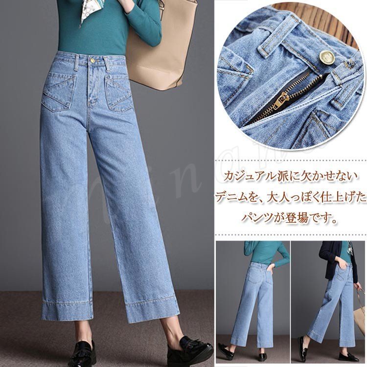 デニム レディース ワイドパンツ ボトムス 九分丈 ジーンズ ウオッシュデニム 春 夏