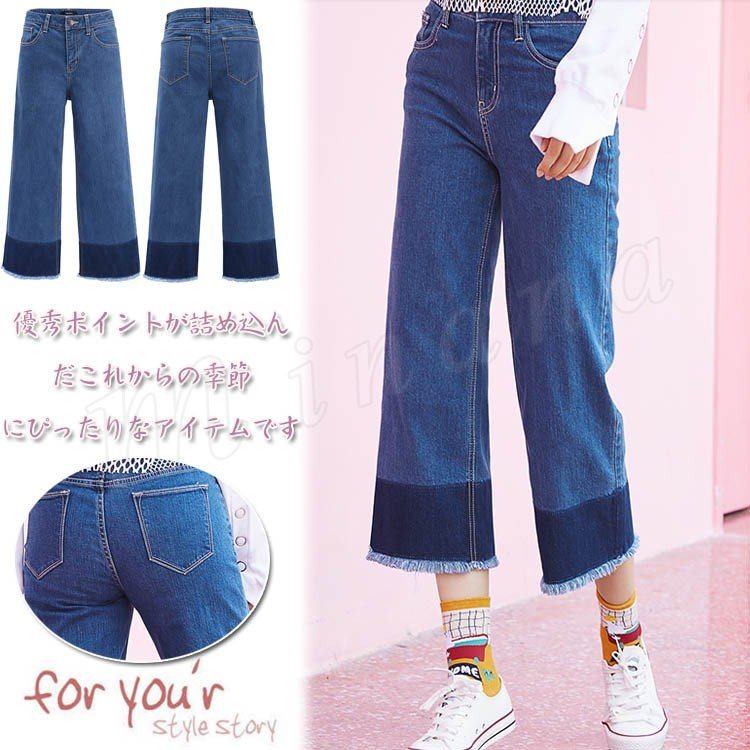 9分丈 パンツ デニムパンツ 裾フレア パンツ デニムパンツ ジーンズ デニム ジーパン ボトムス デイリー 美脚 パンツ レディース