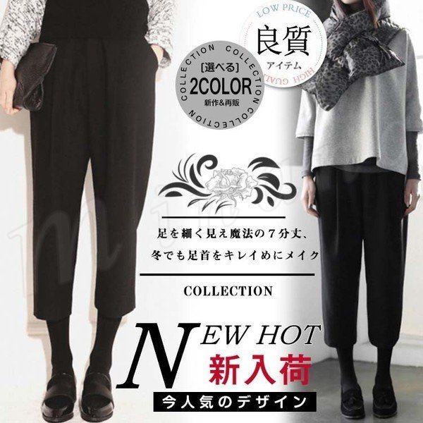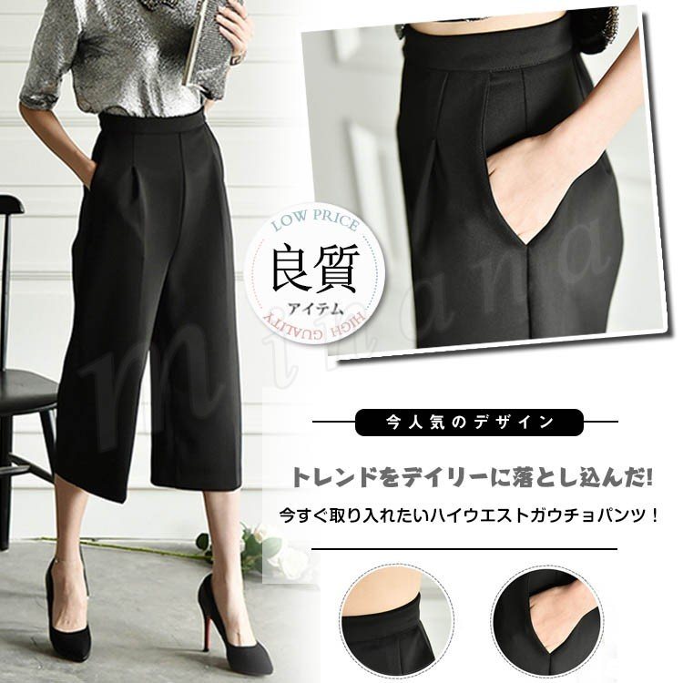 パンツ 無地 ガウチョパンツ ワイドパンツ バギーパンツ ボトムス 七分丈 レディース シンプル クロップドパンツ ゆったり ハイウェスト 秋