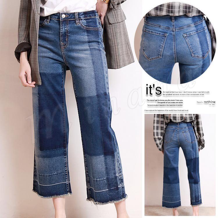 ボトムス デニムパンツ ワイドパンツ スリッド レディー スジーンズ デニムパンツ