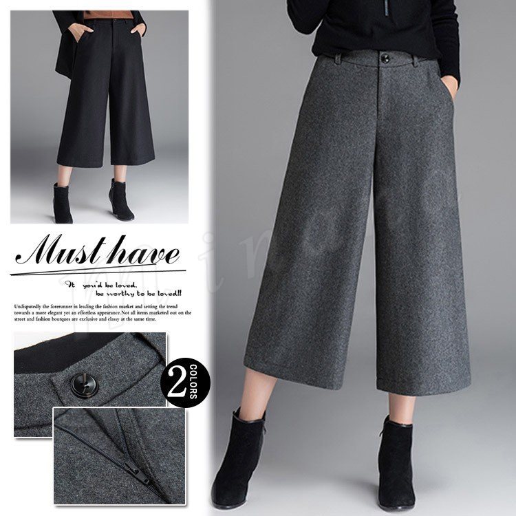 ガウチョパンツ レディース シンプル 上品 脚長効果抜群の魔法のパンツ 大きめ 美脚 秋冬 ガウチョ ワイドパンツ