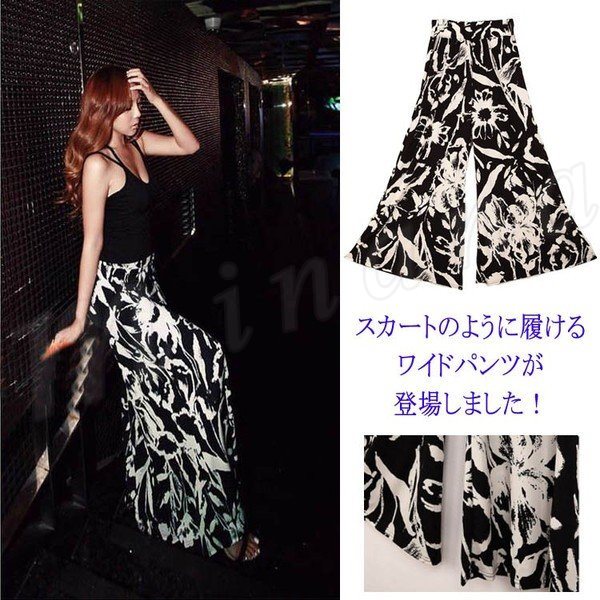 花柄ボタニカル柄ロングガウチョパンツスカーチョレディースフレアスカートワイドパンツマキシ丈キュロットフレアパンツ
