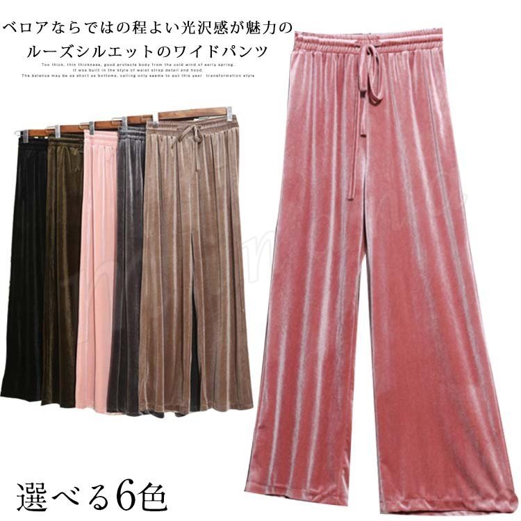 ベルベット ワイドパンツ ガウチョパンツ レディース ロングパンツ レトロ ハイウエスト ゆったり 着痩せ スリム カジュアル ベロアパンツ きれいめ
