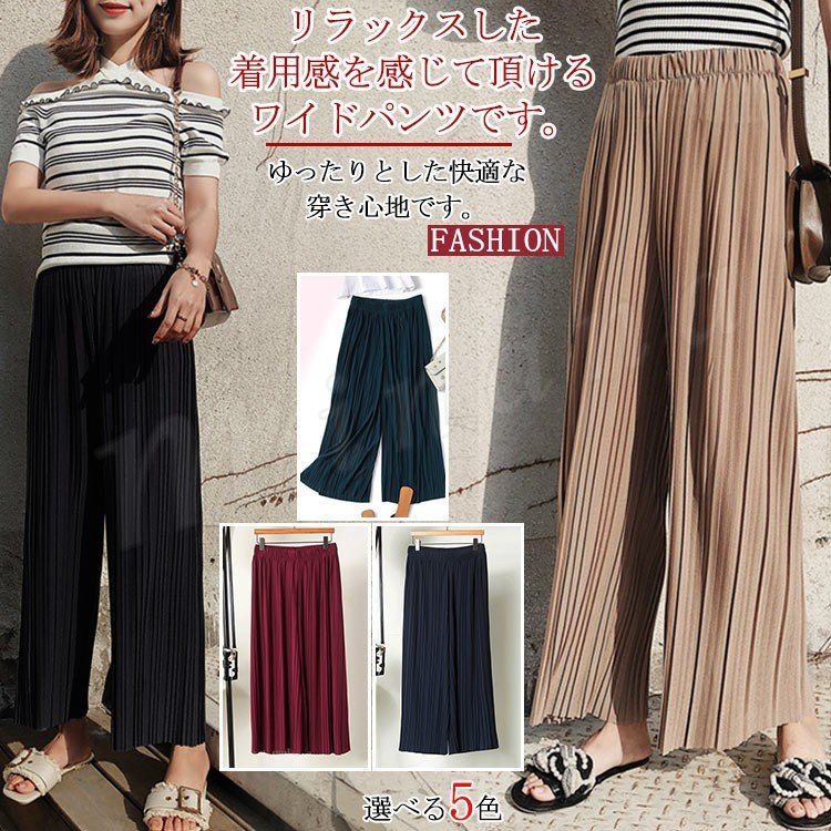 ワイドパンツ ガウチョパンツ レディース ロングパンツ プリーツ 着痩せ 無地 ゆったり カジュアル お洒落 シンプル フェミニン エレガント