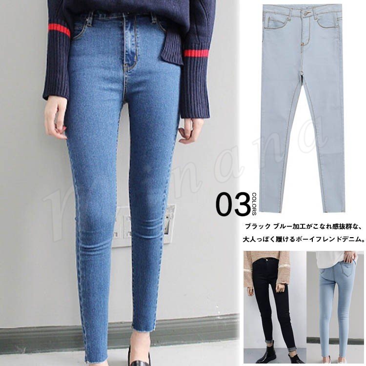デニム ブラック ブルー スリム ストレートパンツ レディース