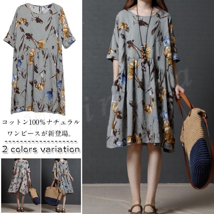 ワンピース 膝丈 レディース 大きいサイズ ワンピース リネン ワンピース リゾート 半袖 森ガール カジュアル 2018春夏新作