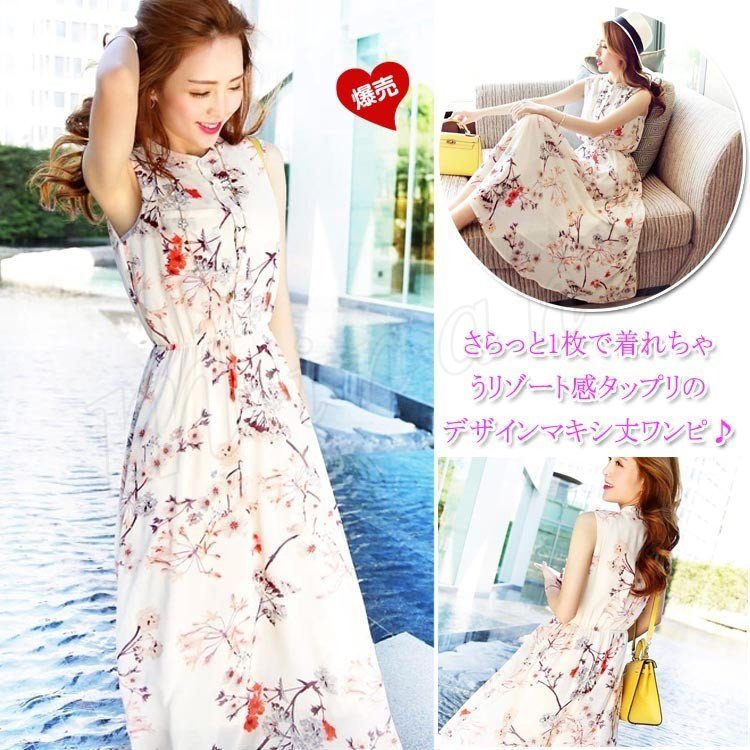 マキシワンピース シフォン 花柄 ノースリーブ aライン フレア ロング 大きいサイズあり レディース 春夏 リゾート ビーチワンピース