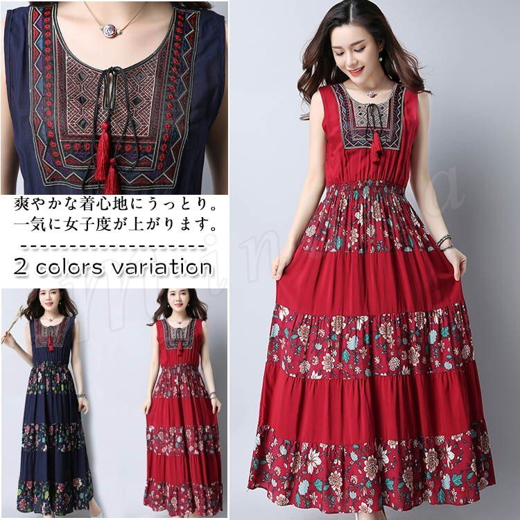 レディース マキシ丈ワンピース フレア 花柄 ワンピース ロング マキシ丈 ノースリーブ ワンピース フレア マキシ丈ワンピース 花柄 母の日