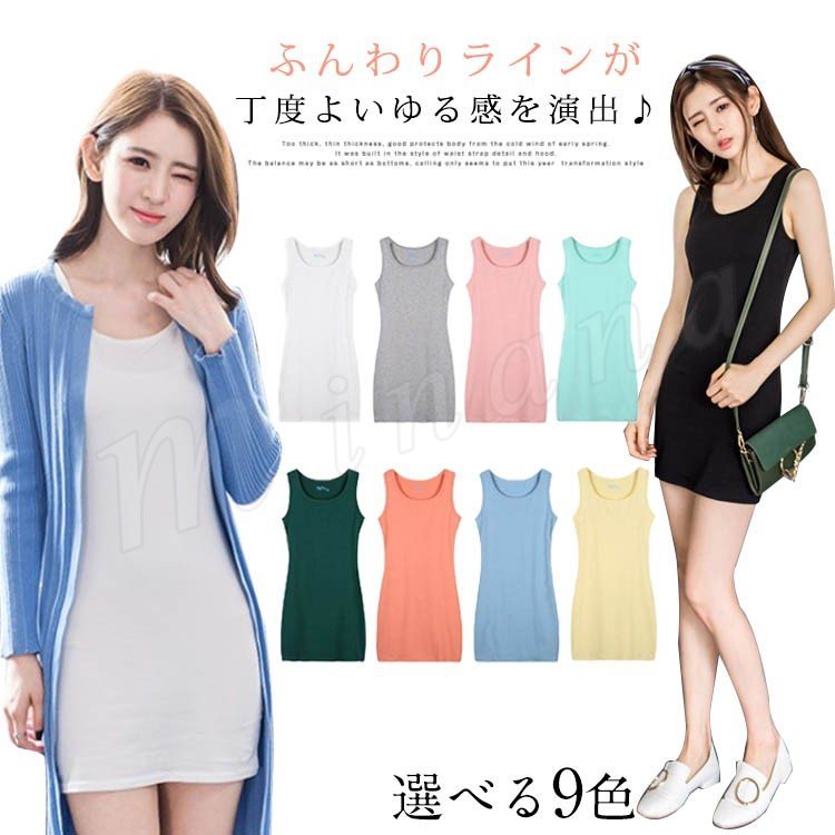 レディース タンクワンピース トップス キャミソール 無地 ロング丈 シンプル タイト スリム レディース ミモレ丈 ノースリーブ コットン ルーム