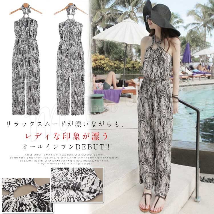 レディース オールインワン セクシー ワイドパンツ パンツドレス ノースリーブ オールインワン サロペット オールインワン ビーチ リゾート