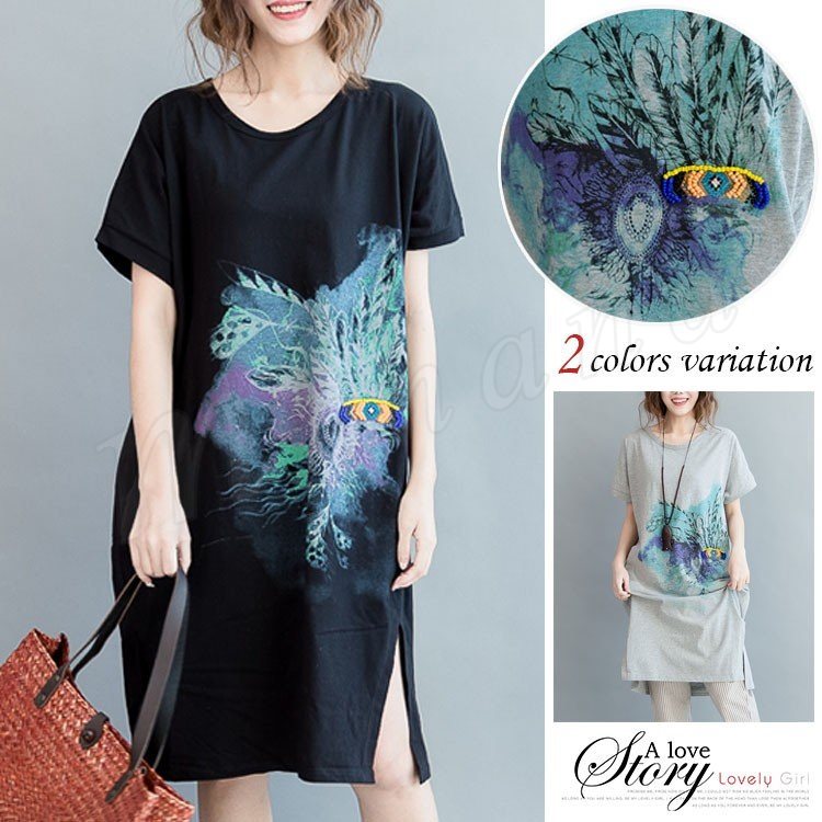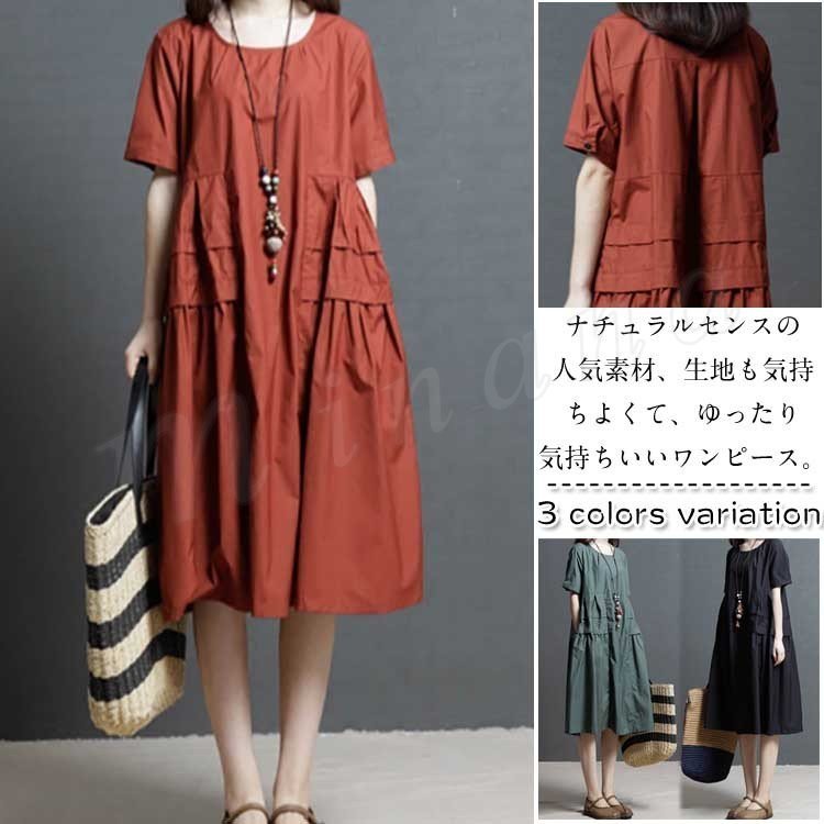 レディース ワンピース チュニック 半袖 膝丈 Aライン フレアワンピース ミディアム丈 ゆったり シンプル 体型カバー 大きいサイズ 3カラー 4サ
