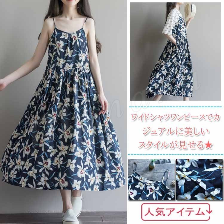 ワンピース夏ワンピ夏レデイースノースリーブシャツワンピ棉麻リネンマキシ丈大きいサイズマキシ丈